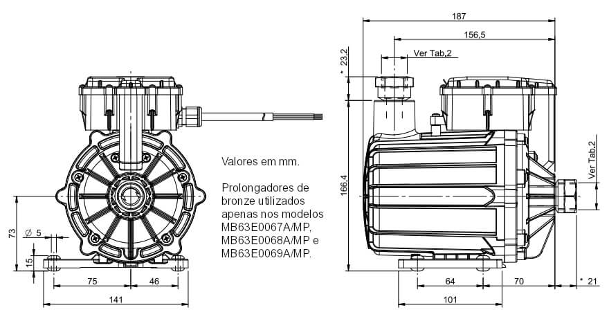 - Proteção térmica – desliga automaticamente a motobomba na ocorrência de sobreaquecimento e nos modelos MB63E0008A/MP e MB63E0009A/MP também no caso da água no interior da mesma atingir temperatura superior à 65°C, com rearme automático quando a temperatura no interior for inferior a 35°C.