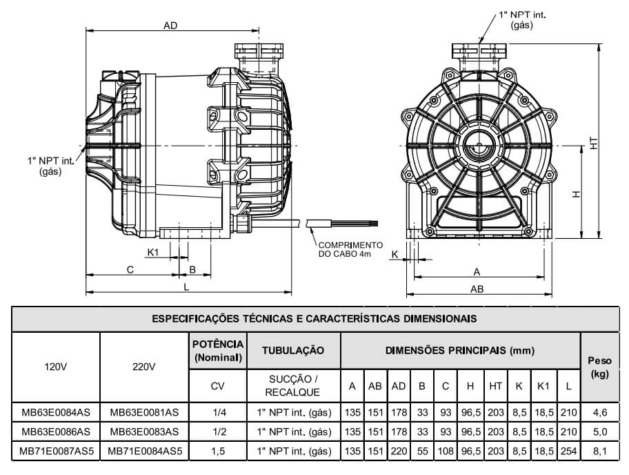 - MB71E0084AS5 1,5cv 220V